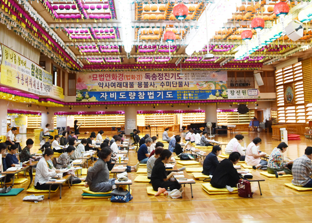 9월 25일 능인 대법당에서 큰스님을 모시고 추계묘법연화경 독송을 이틀동안 봉행한다