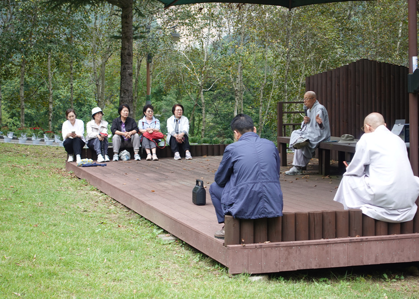 능인으로 돌아가는 길에 무궁화공원에 들러 잠시 스님의 법문을 듣고 순례길을 마쳤다.