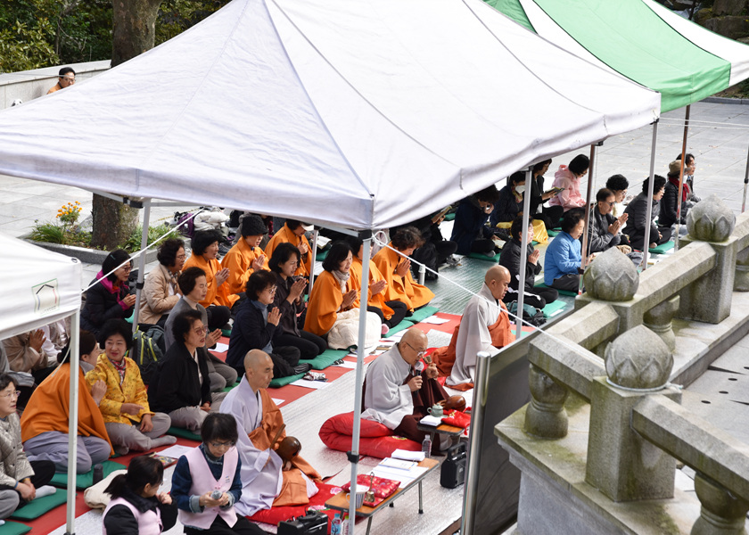 한 자 한 자 정성스럽게 쓴 사경집을 들고 올라오신 법우님들은 타종을 시작으로 큰스님과 함께 정근을 하고 사경의식을 시작하였다.